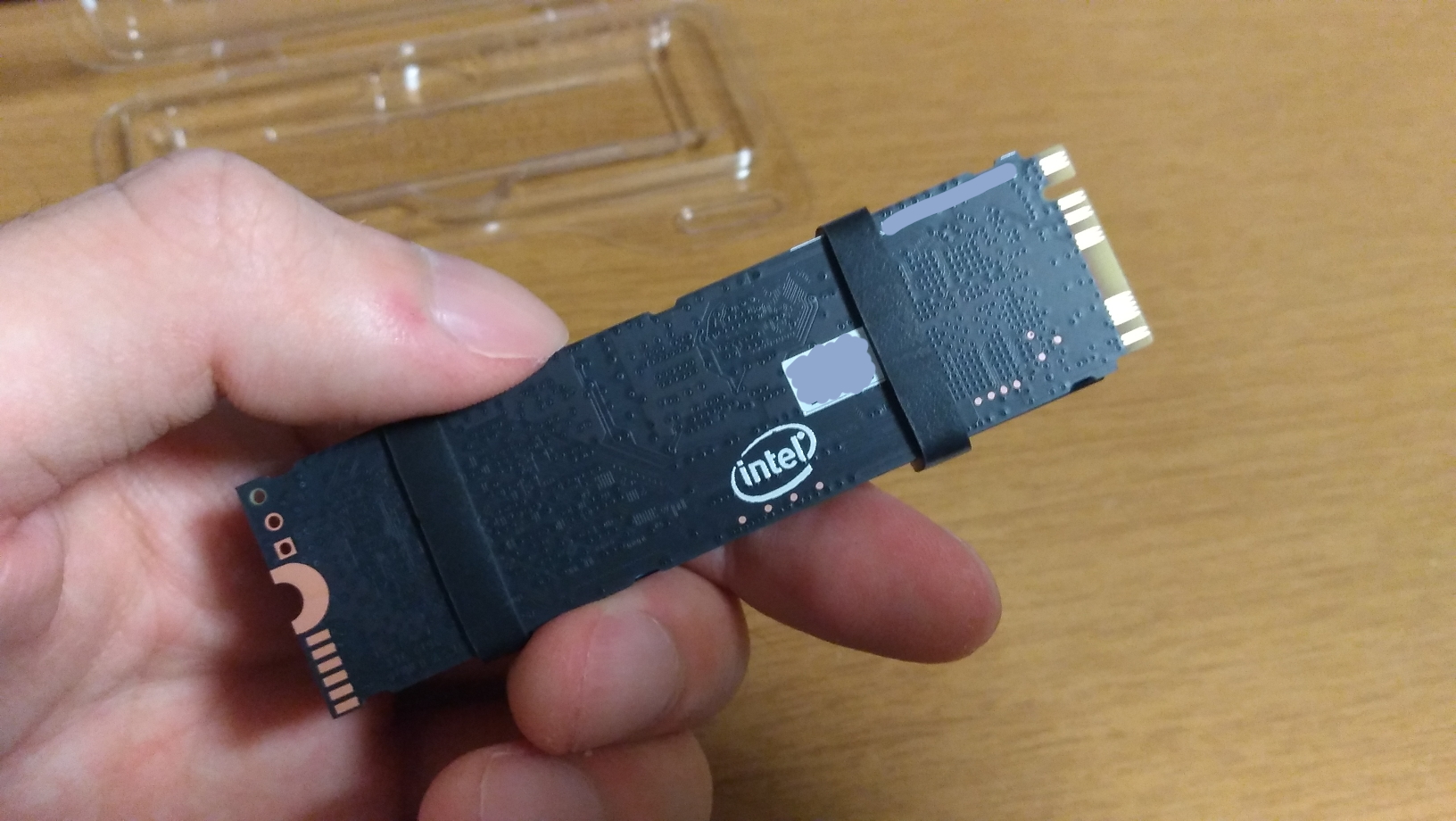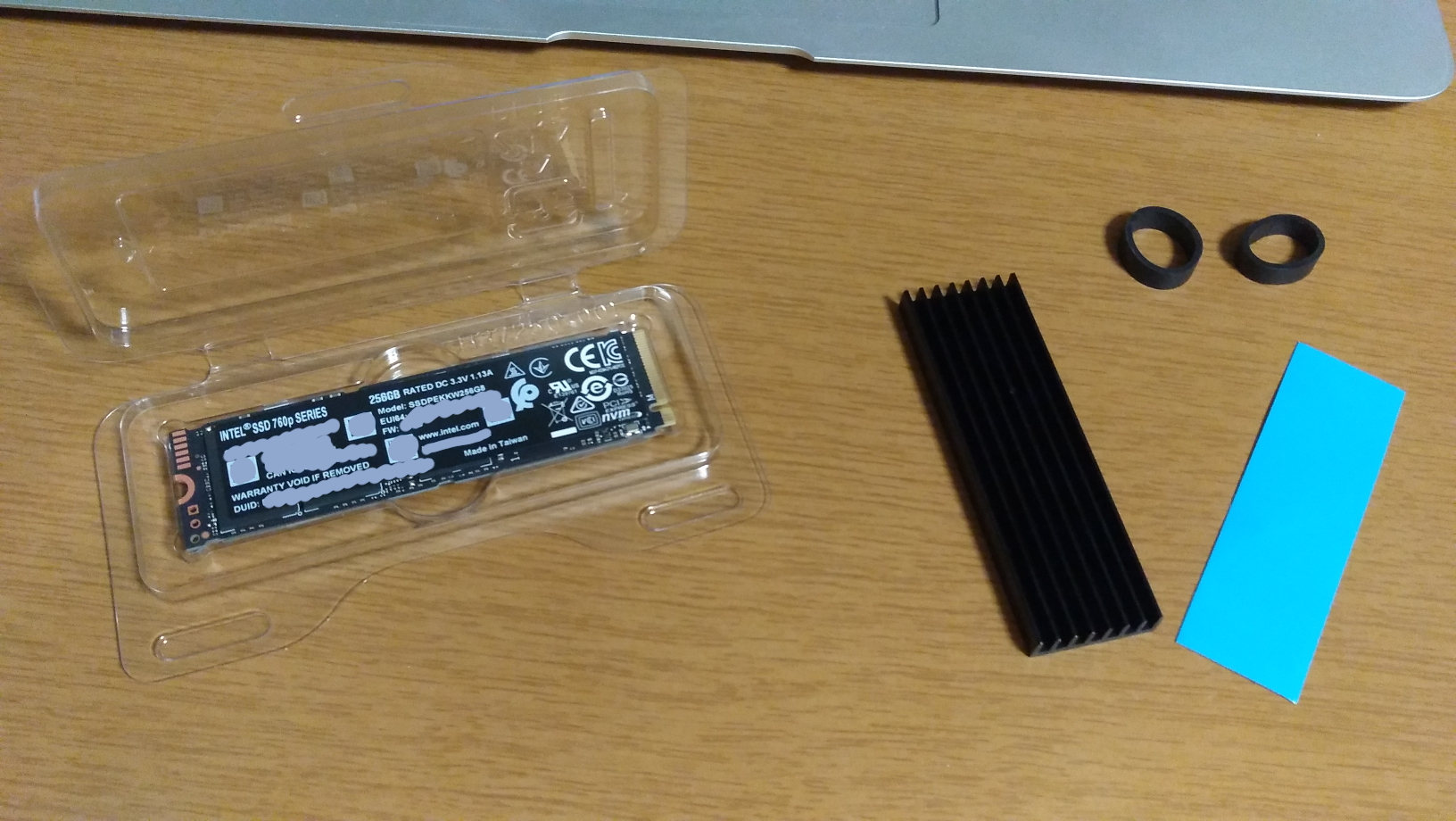 当時は一刻も早く原状回復したかったのでHDDをそのまま挿げ替えて使い続けていましたが、まあ時代はSSDでしょw という感じでIntelのM.2 SSDとヒートシンクを軽率にポチりました。