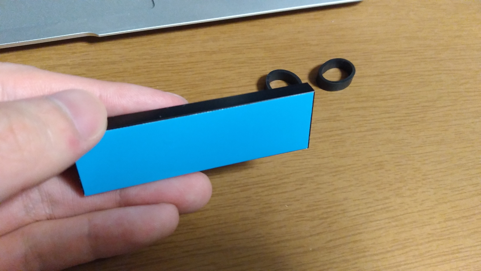 これをSSDの上面と合わせ、ゴムバンドで固定していきます。ゴムバンドを通すのに少し力がいりました。こわいです。