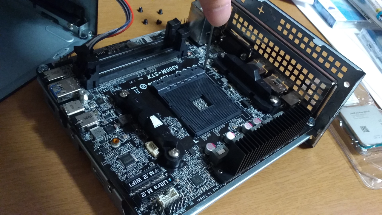 早速マザーボードを引き出してCPUソケットのロックを外します。