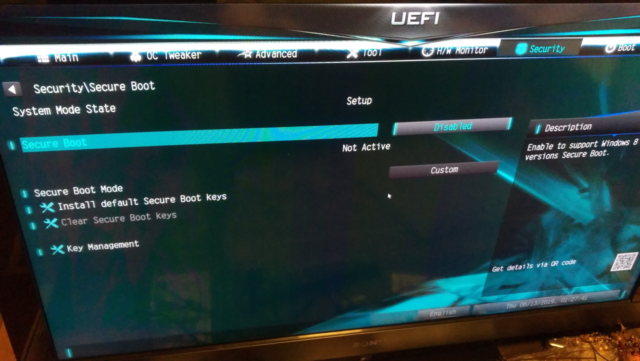 調べてみるとこれはCSM(Compatibility Supported Module)が無効化されているために起こるものとのことでした。