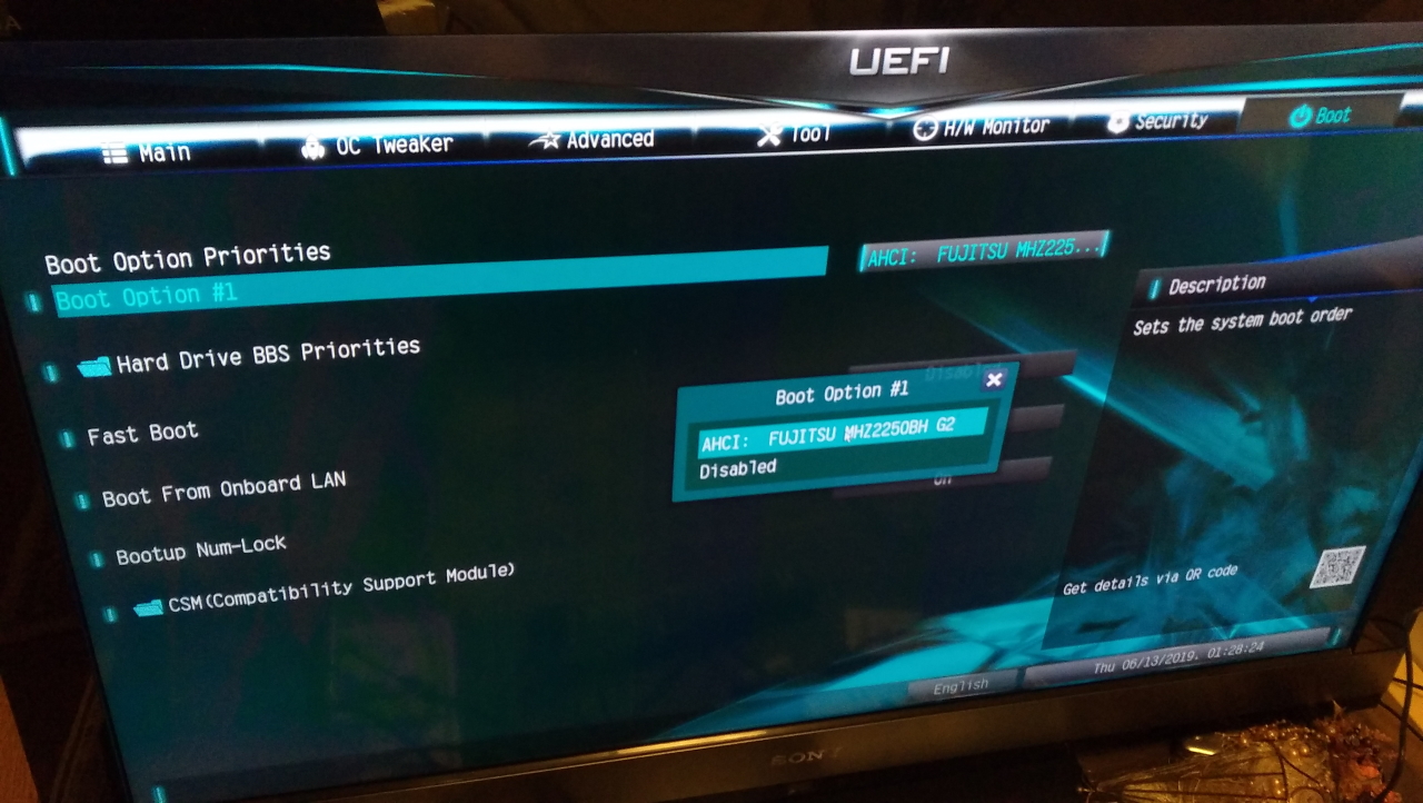 さて、基本的な組み立てが終わりこれまで使っていたUbuntuを起動しようとUEFIの設定画面を見ても、Ubuntuが入っているはずのディスクがブート対象のドライブとして見つかりません。